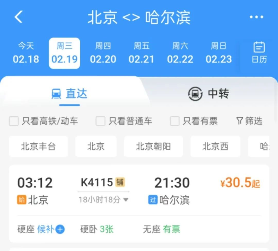 这天是2月18日,0点后的北京站,候车室里的东谈主流量彰着增大。座位已满,有些疲累的游客索性找一派旷地,以卧姿恭候检票口的开启。他们所买的列车班次,险些皆在后深夜,在车站里等上几个小时,算不得什么清新事。毕竟,相较于日间,这些车次的票价更为便宜。